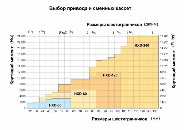 • Широкий спектр дюймовых и метрических шестигранных кассет и вставок-переходников